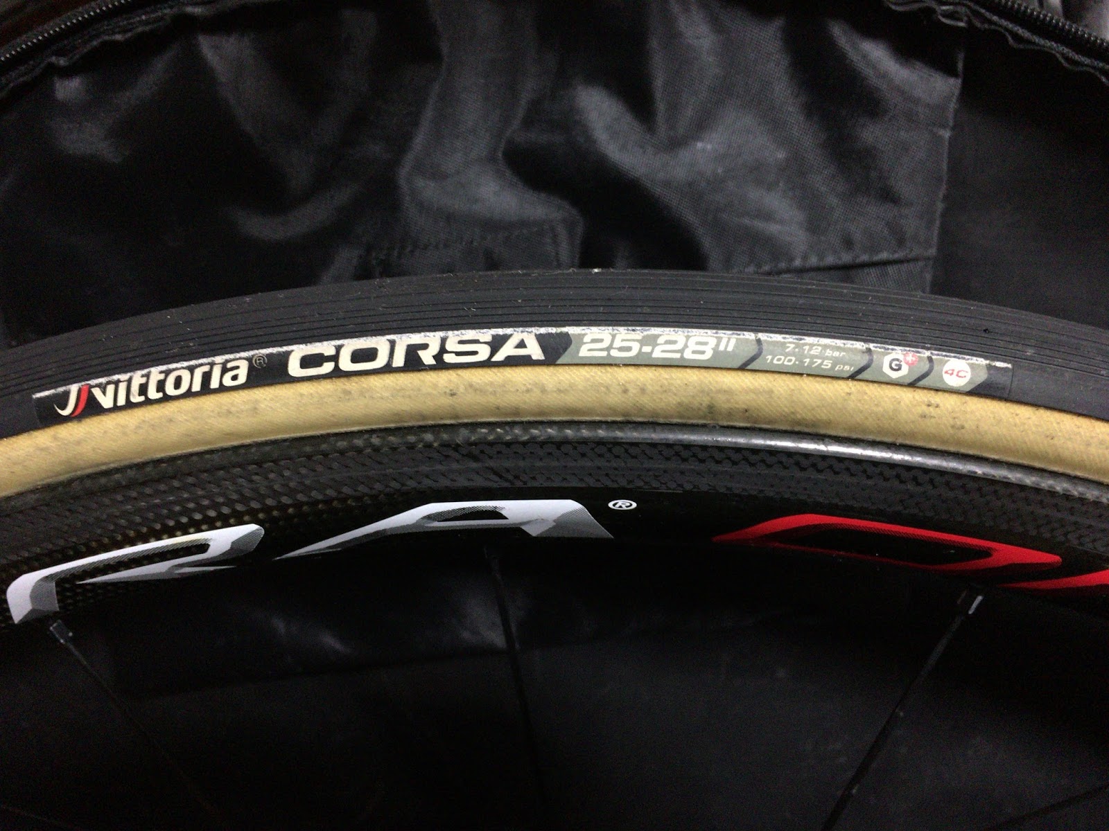 特に、上で挙げたvittoriaはかなりしなやかなので、空気圧を下げすぎると、タイヤがしなりすぎて不安定になる。そして、先代よりしなやかさの度合いが少なくなった新型Corsaでは、むしろ普段より高圧にしたほうが接地感が上がる傾向があることに気付いた。逆に言えば、高圧にしてもあまり跳ねない。